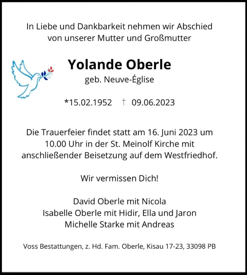 Yolande Oberlegestorben am 9. Juni 2023